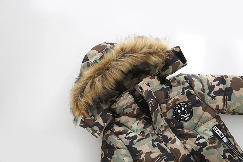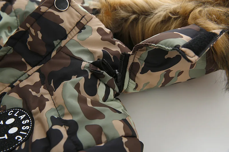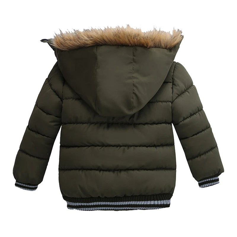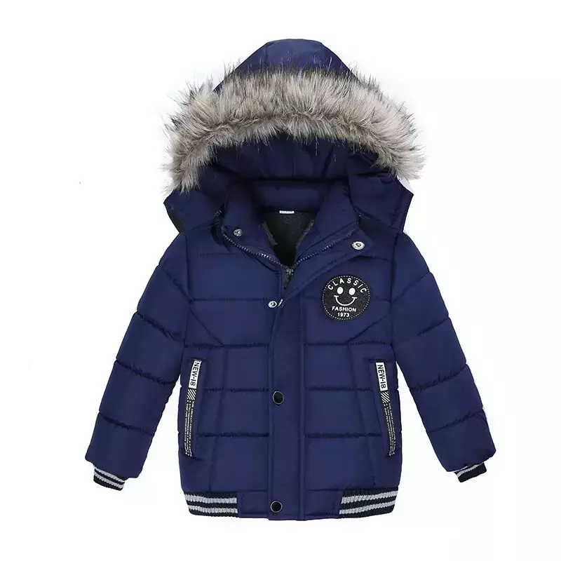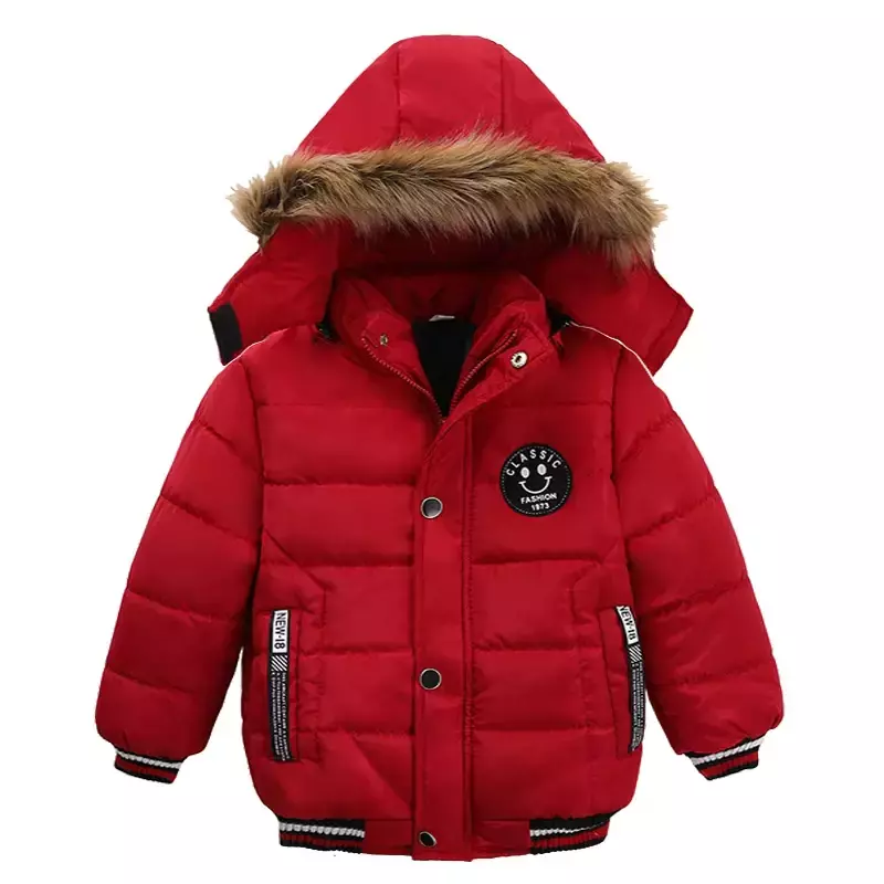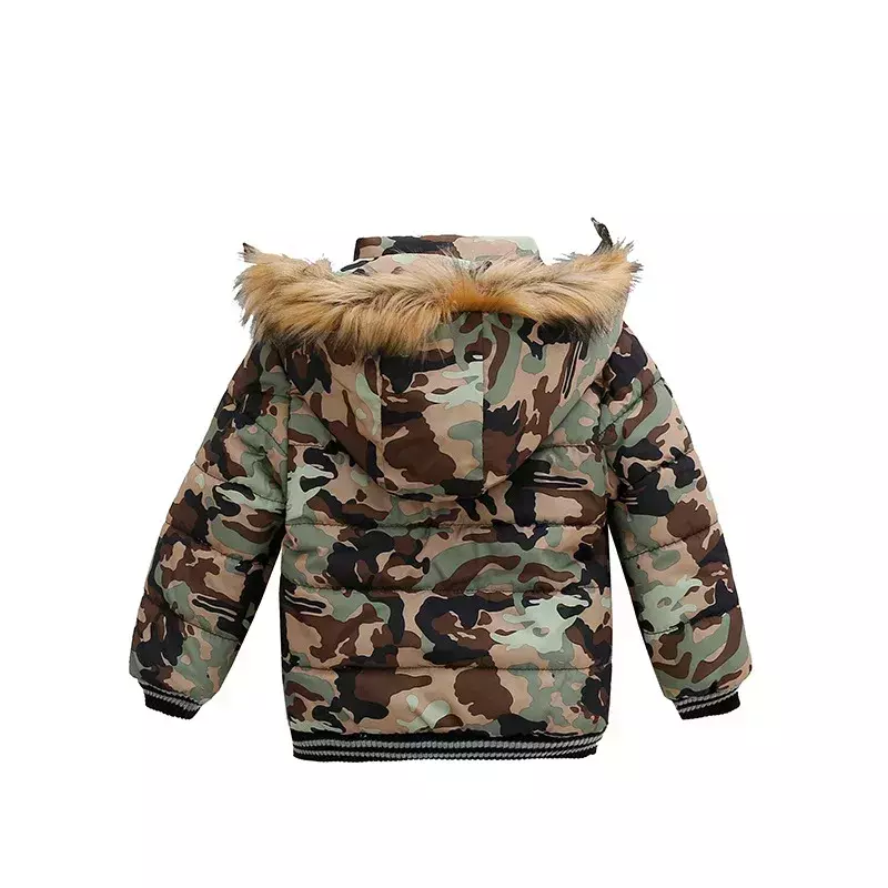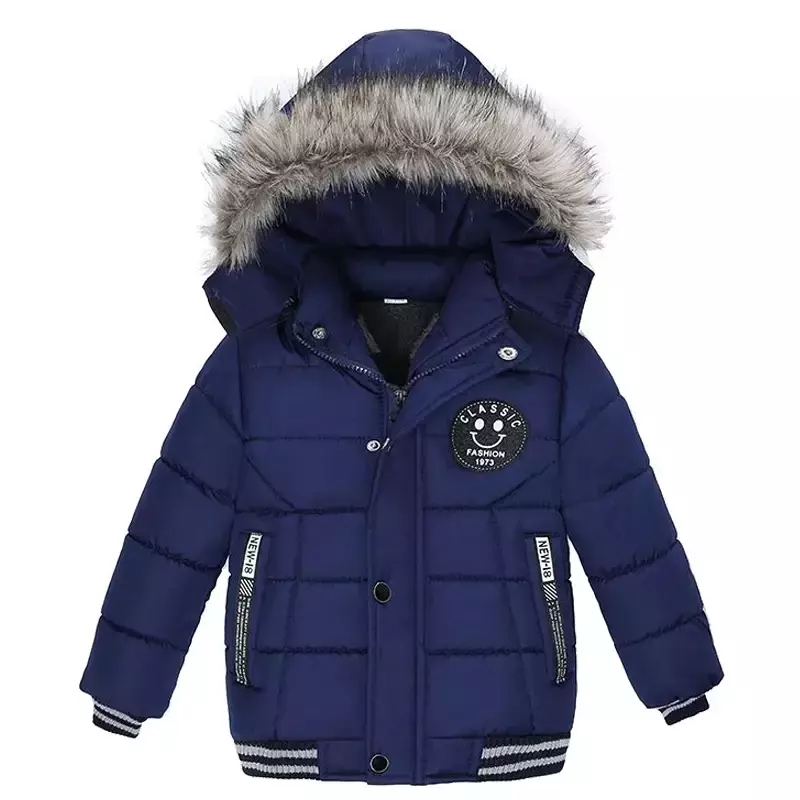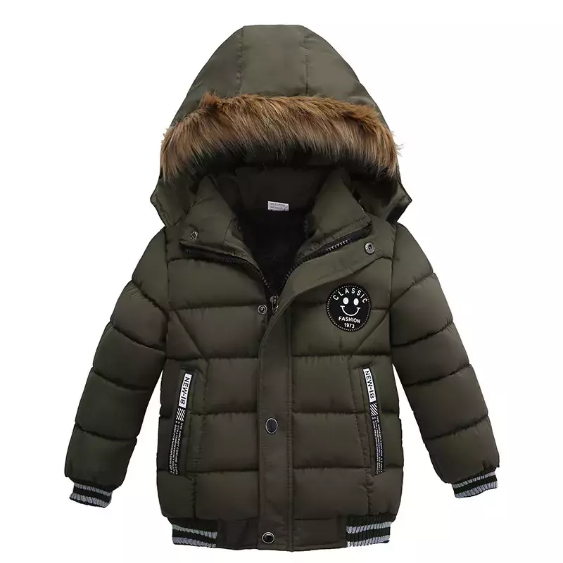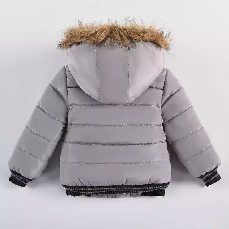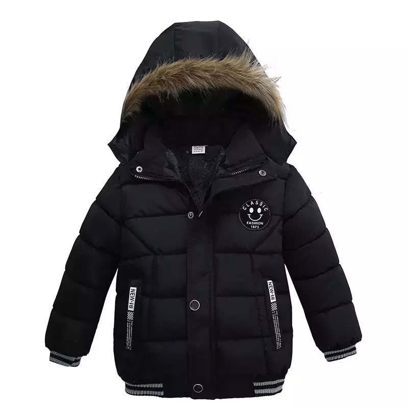 Estilo irresistível: Detalhes em gola de pelo e modelo com estampa moderna, perfeito para meninos que gostam de estar bem-vestidos.